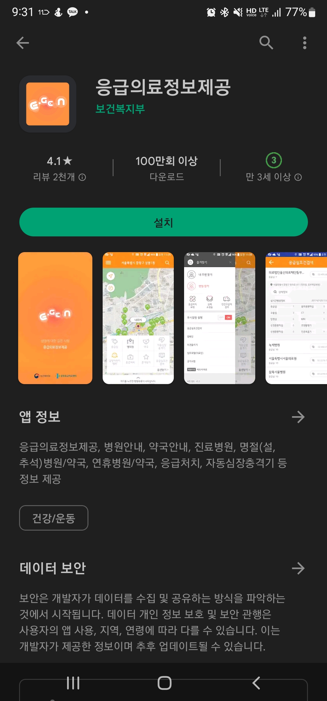 응급의료정보제공 애플리케이션 설치하기
