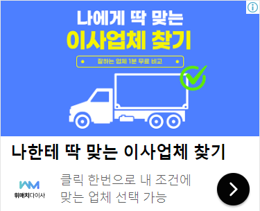 인터넷을 서칭하다보면 광고가 뜹니다. 제가 이사 관련 검색을 했었는지 아래 그림같은 광고가 보였어요.
