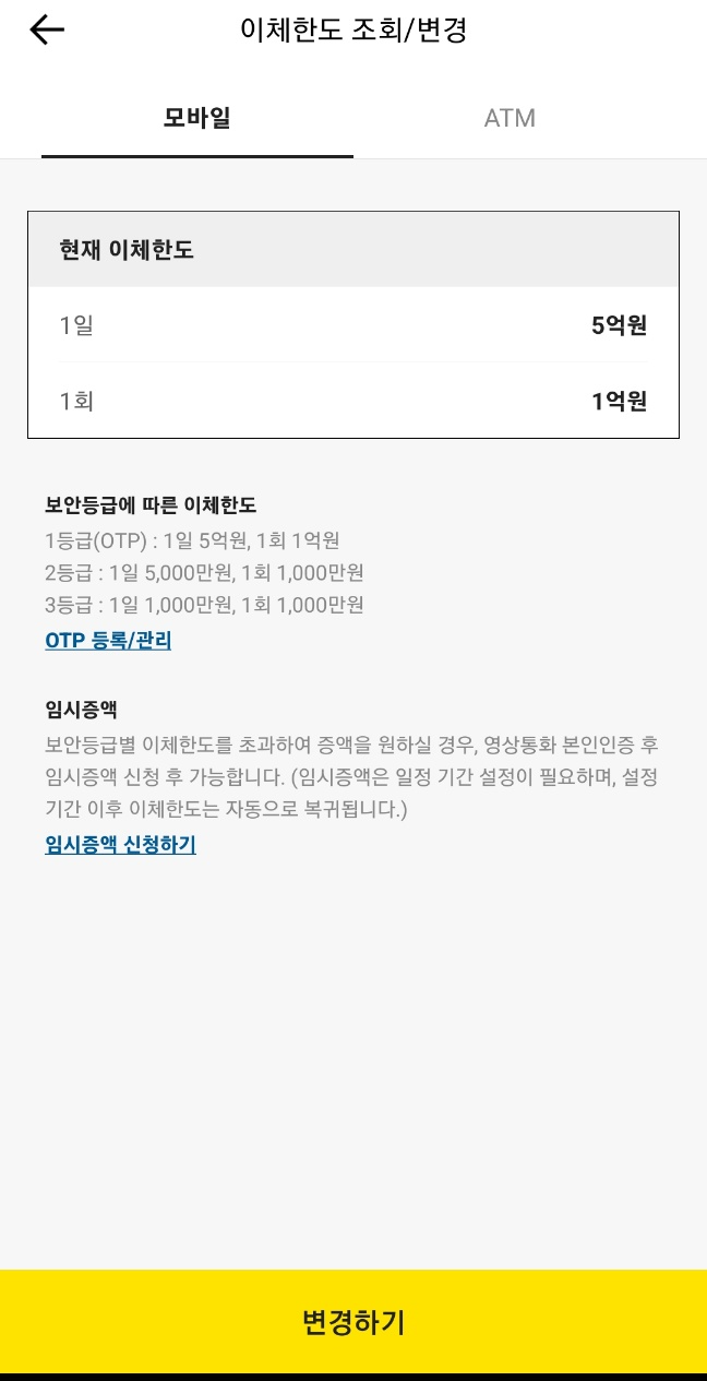 4단계 : 이체한도 확인하고 변경이 필요하다면 변경한다.
