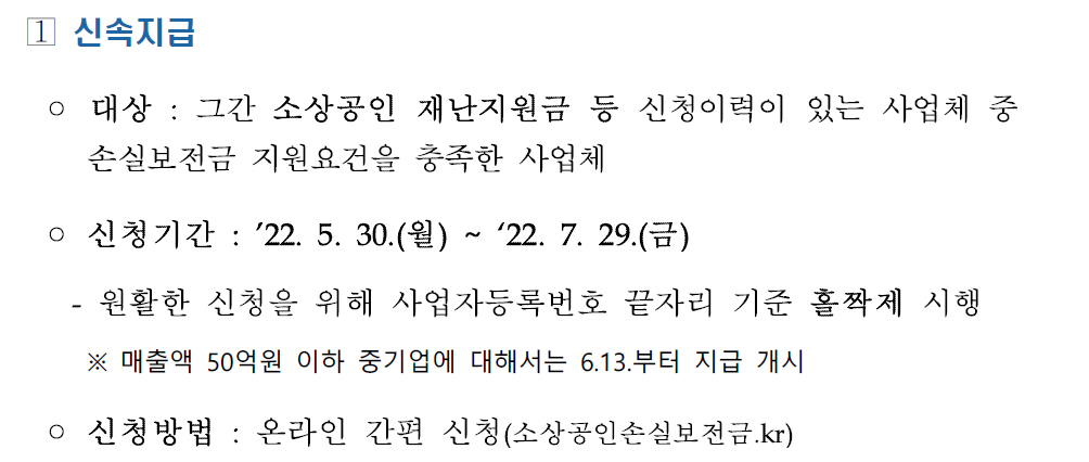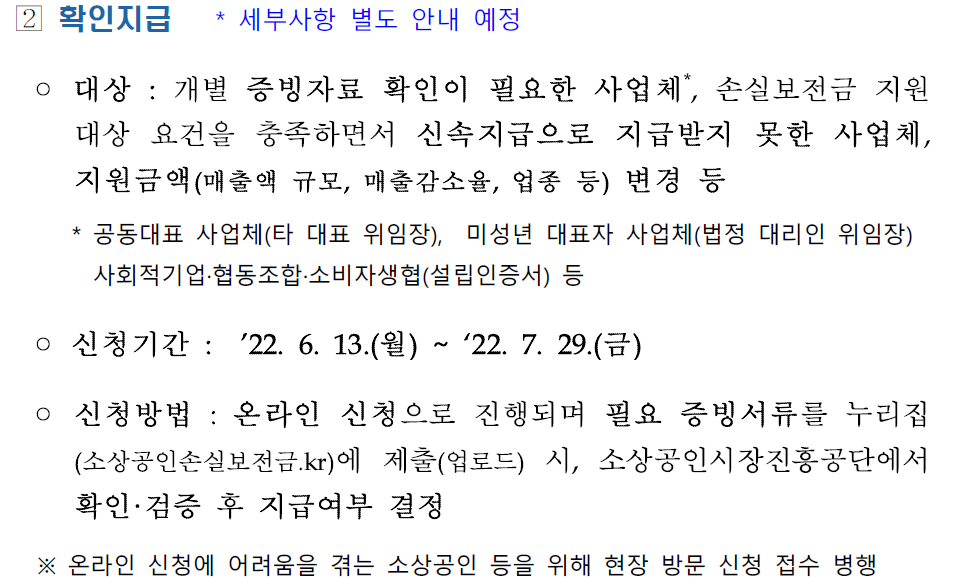 손실보전금 신청기한은 신속지급과 확인지급 모두 7월 29일까지이니 잊지말고 신청하세요!
