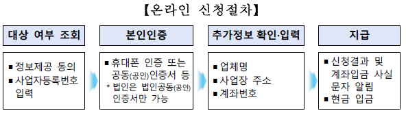 신속지급과 확인지급 모두 온라인으로 신청을 받으며, 신청절차는 아래 그림과 같습니다.