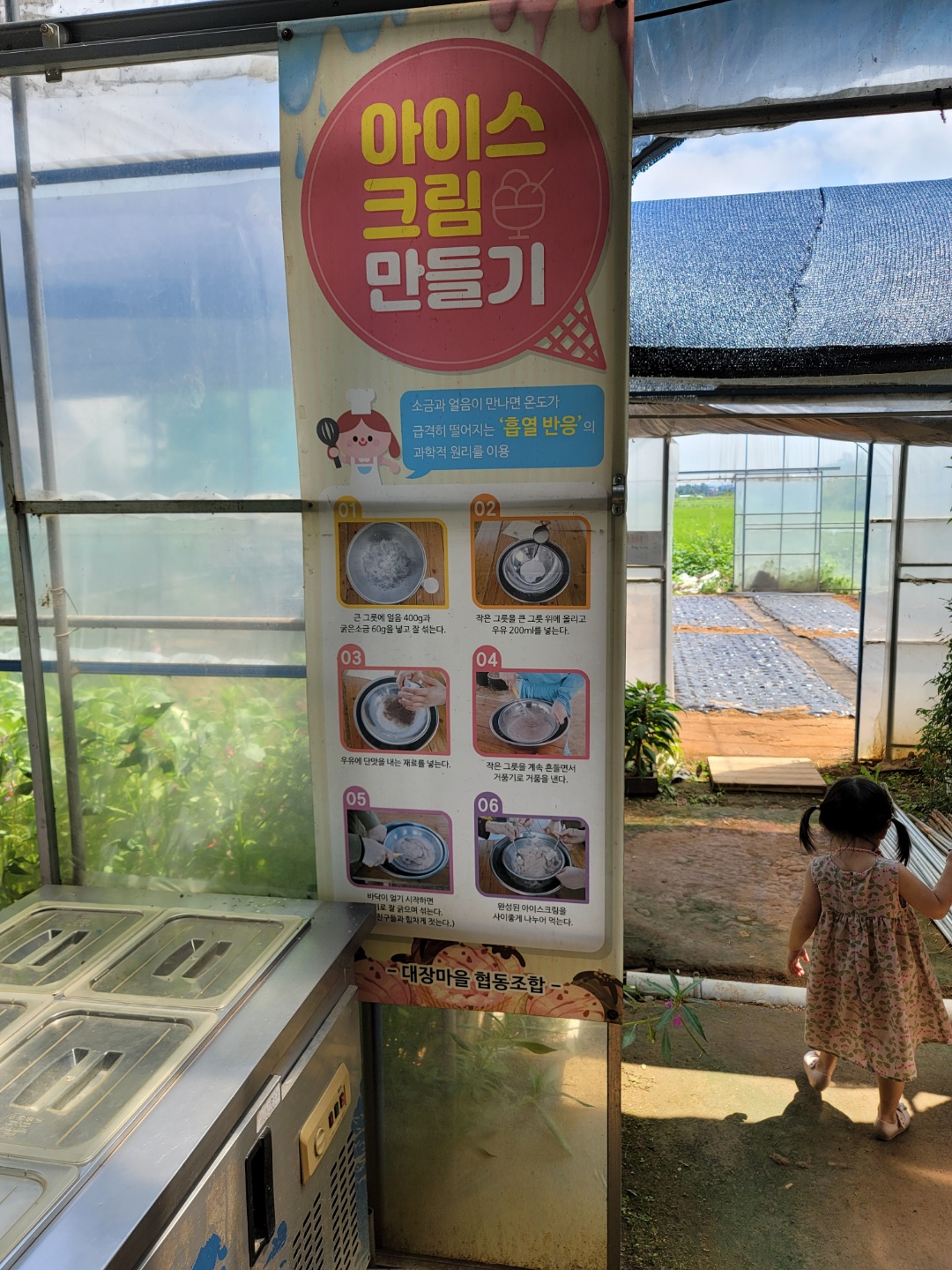 개인적으로는 아이스크림 만들기는 집에서 별도로 준비해서 하는 게 더 나아 보였고, 피자만들기도 이 더위에 하기에는 힘들 것 같았습니다. 체험장 한 켠에 아이스크림만들기에 대한 설명이 있어서 사진으로 남겨보았는데 집에서도 충분히 할 수 있을 것 같았습니다. 그리고 체험장 입구로 가기 전에 계절별 체험에 대해서도 입간판이 있었는데 고구마캐기, 상추따기 ,김장담그기 등의 체험도 할 수 있는 것 같았습니다.