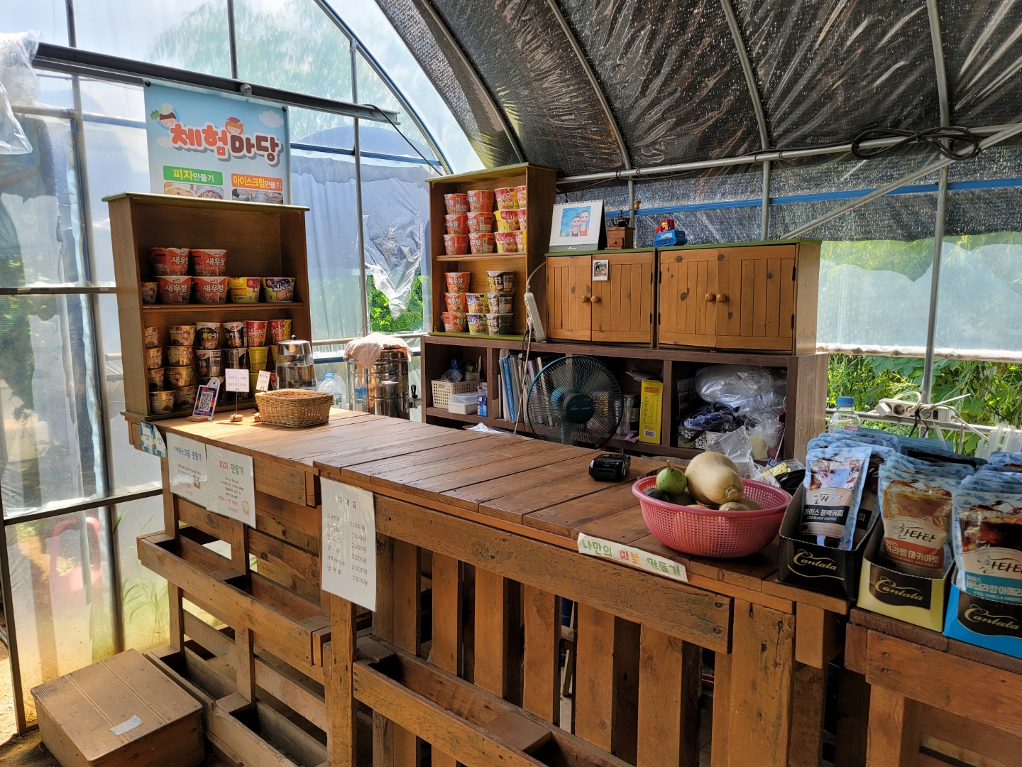 매점 겸 쉼터에서는 라면이랑 음료들도 사 먹을 수 있었습니다. 하지만 막상 이용하는 사람들은 많지 않았어요. 저희가 갔을 때 2 가족이 있었는데, 한 가족은 피자만들기 체험을 하고나서 피자를 먹고 있었고, 다른 한 가족은 아이스크림 만들기 체험을 막 하고 있었습니다.