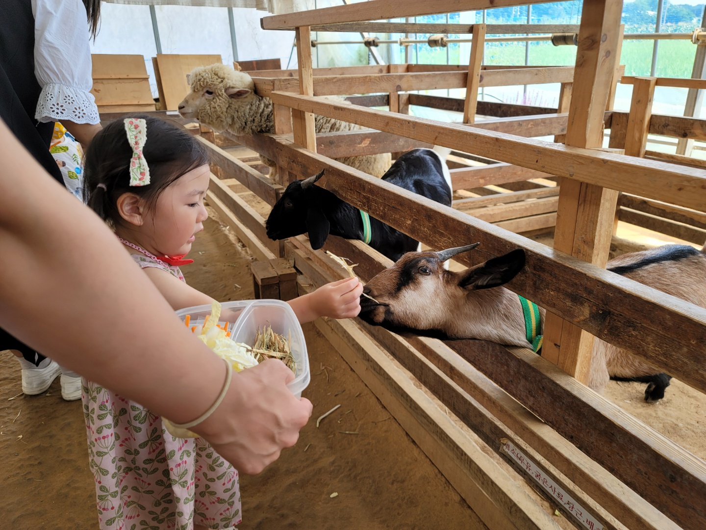 동물들이 생각보다 다양하고 먹이주기도 편하게 되어 있어서 체험하기에 괜찮습니다. 단, 아쉬웠던 점은 여름에는 냉방시설이 부족해서 덥다는 것이었습니다. 대형 선풍기들을 여러대 세워놓아서 바깥 기온보다는 괜찮았지만, 그래도 더웠습니다. 저희 가족은 2시간을 다 못 채우고 1시간 정도 있다가 나왔는데, 아이가 더워서 계속 아이스크림 먹고 싶다고 보챈 것이 가장 큰 이유였어요. 만약 나눔농장을 방문하는 것으로 계획하고 계시다면 이 점은 유의하시는게 좋을 것 같습니다.