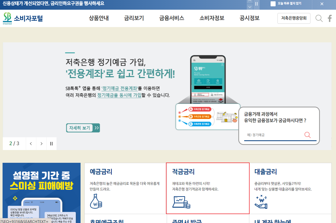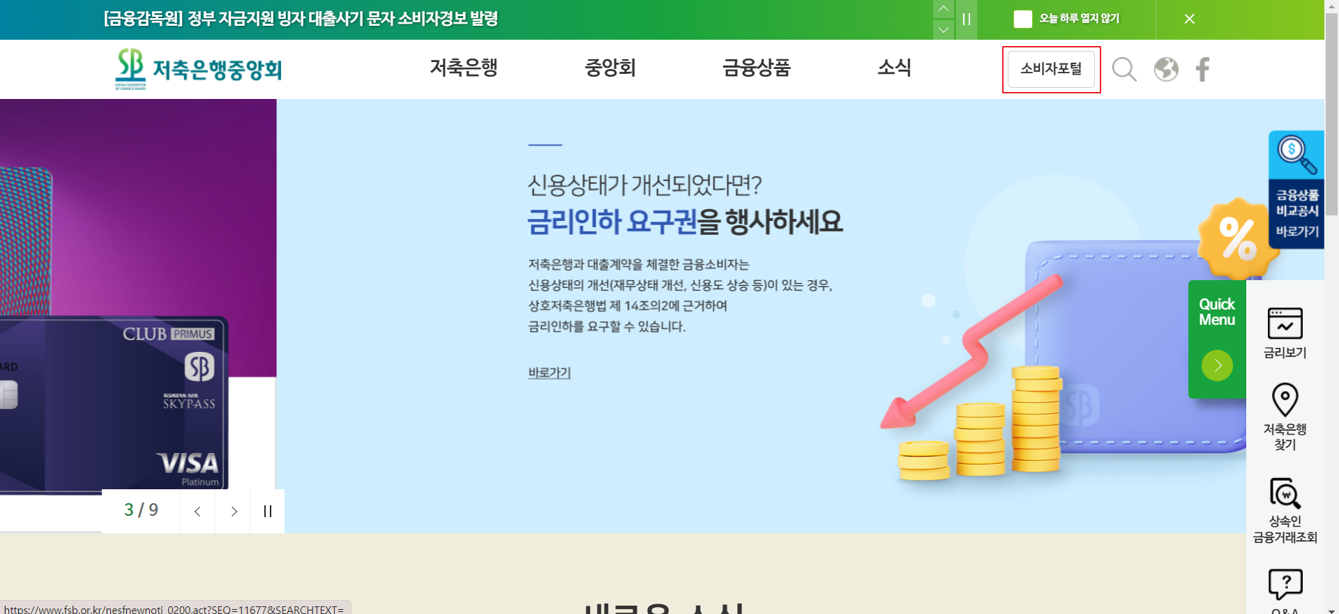 Step 1 : 저축은행중앙회 소비자 포털 사이트에 접속한다.