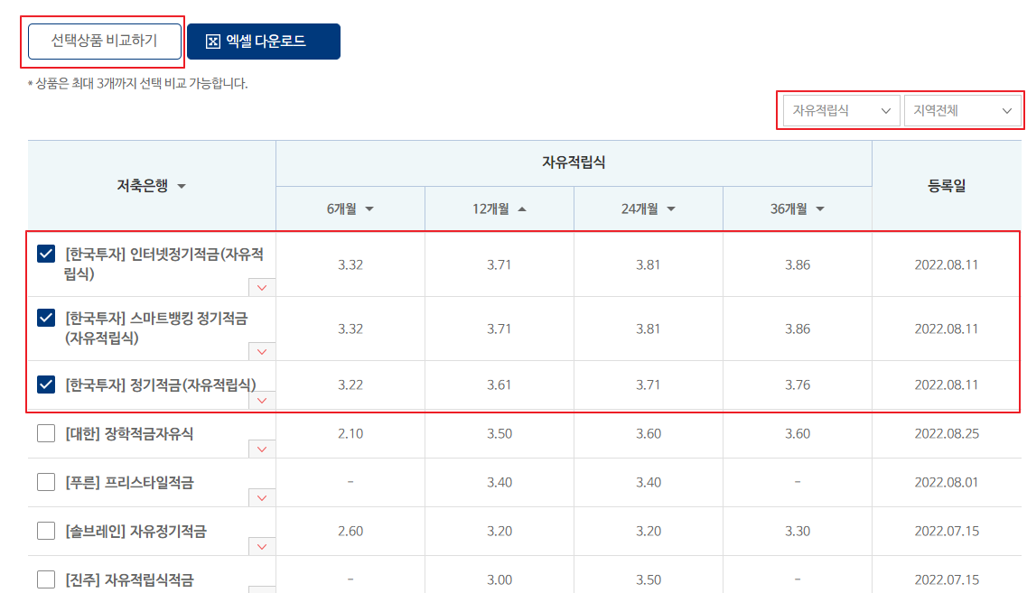 Step 4 : 검색 결과를 확인하고, 조건 등을 수정하여 내가 가입할 상품을 고른다.