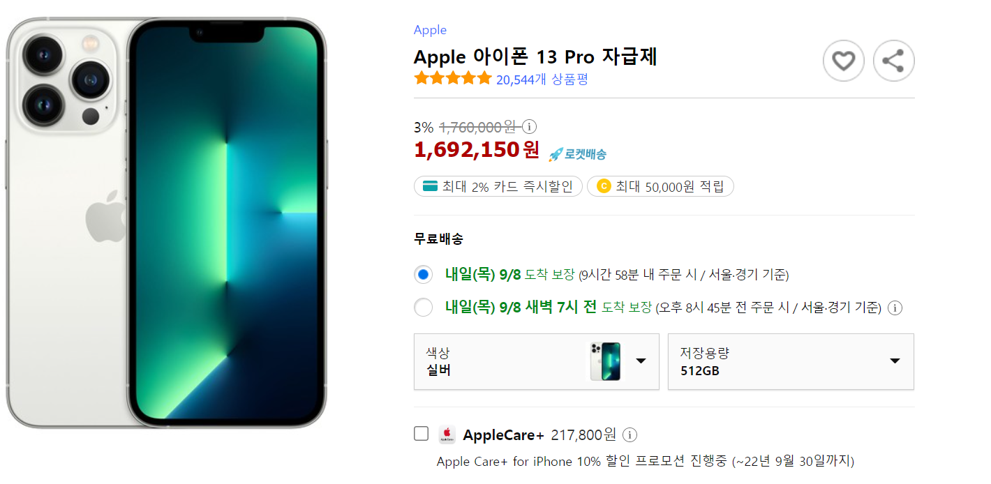 1. 아이폰 13 Pro 512GB 자급제폰 가격 : 쿠팡 기준 1,692,150원