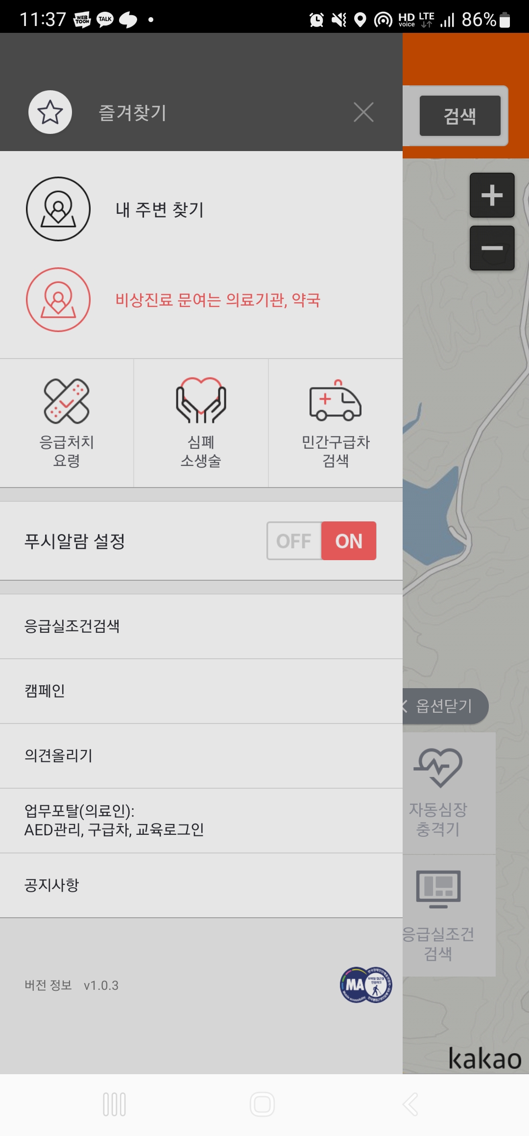 위에서 간단한 방법으로 응급의료정보제공 애플리케이션을 설치하셨다면 사용법은 아주 간단합니다.
