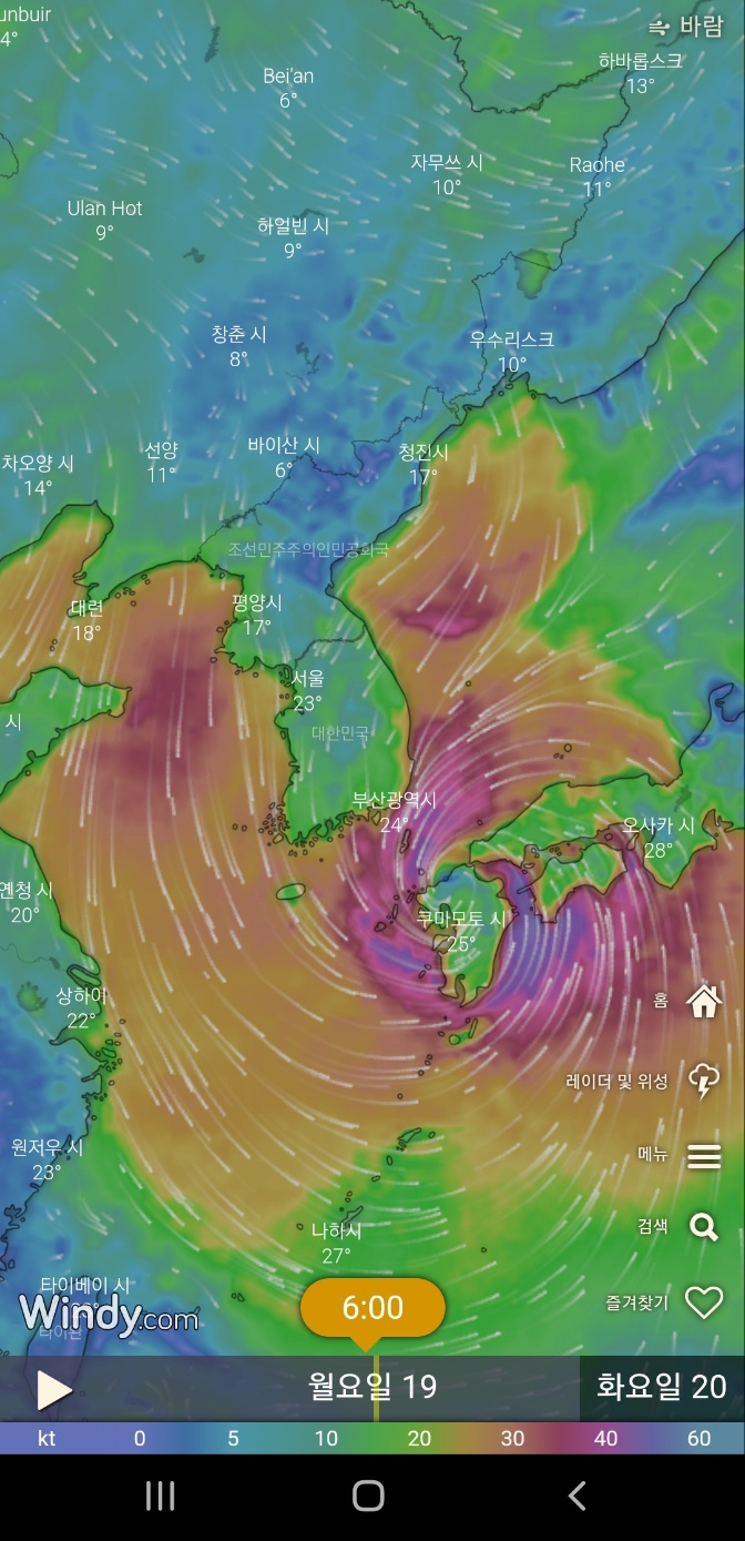 포스팅하고 있는 19일 06시 현재 태풍 난마돌은 제주를 지나 일본 서북쪽에 위치하고 있는 것으로 보입니다.