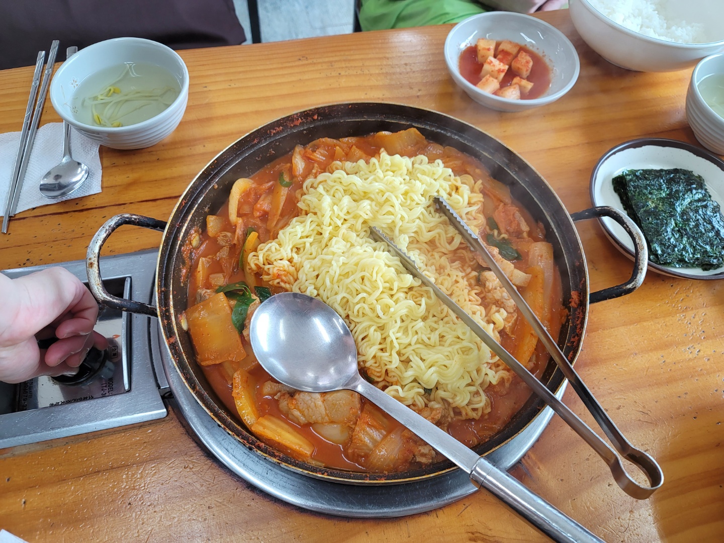 첫맛도 그냥 김치찌개? 비슷한 맛이었습니다. 그런데 이게 숟가락이 멈추질 않습니다. 정말 밥 안 먹는 동기 형도 밥을 리필해서 먹고 있었고, 저도 당연하다시피 밥을 리필했습니다. 익숙한데 익숙해서 너무 맛있는 그 맛 혹시 아실까요? 언제 먹어도 질리지 않고, 가끔씩 일하다가 떠오르는 그 맛이었습니다.