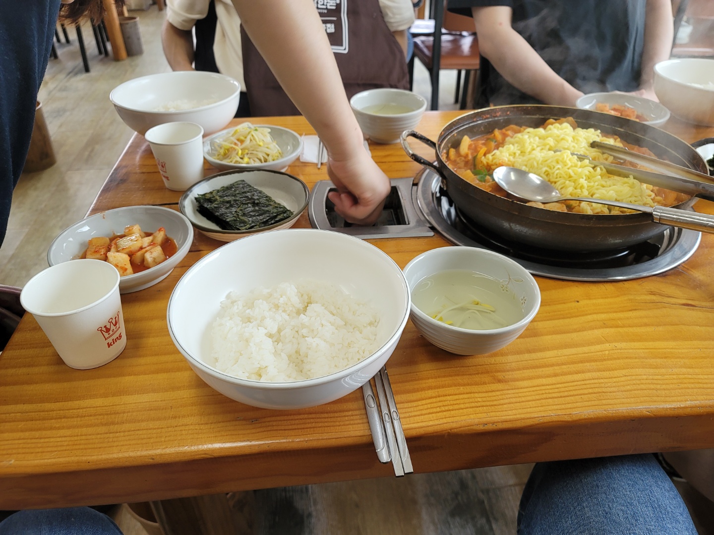 반찬도 깍두기에 구운 김, 그리고 콩나물이 전부입니다. 메인만이 빛날 것을 알려주듯이요.