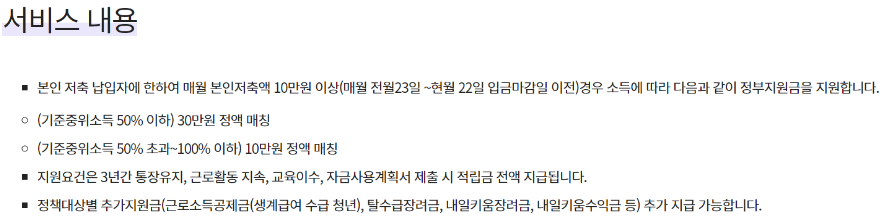 청년내일저축계좌 지원내용
