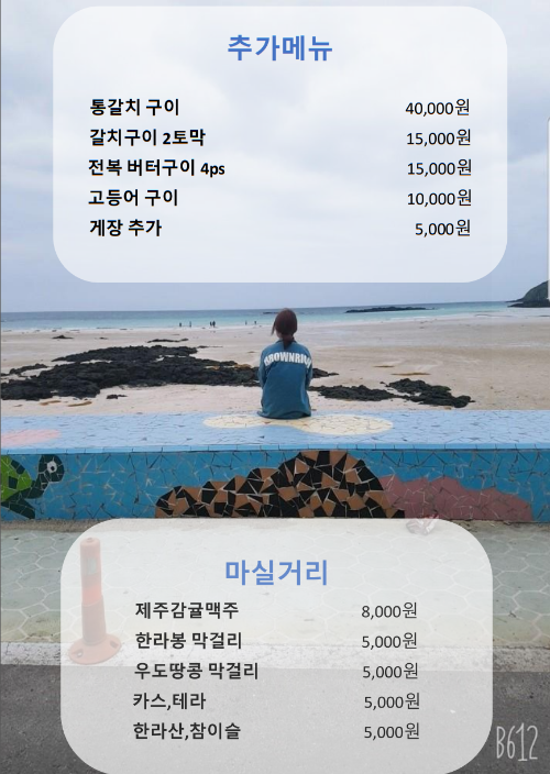 주소 : 제주 서귀포시 일주서로 1146 갈치(상예동 1719-1)