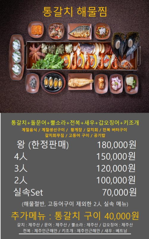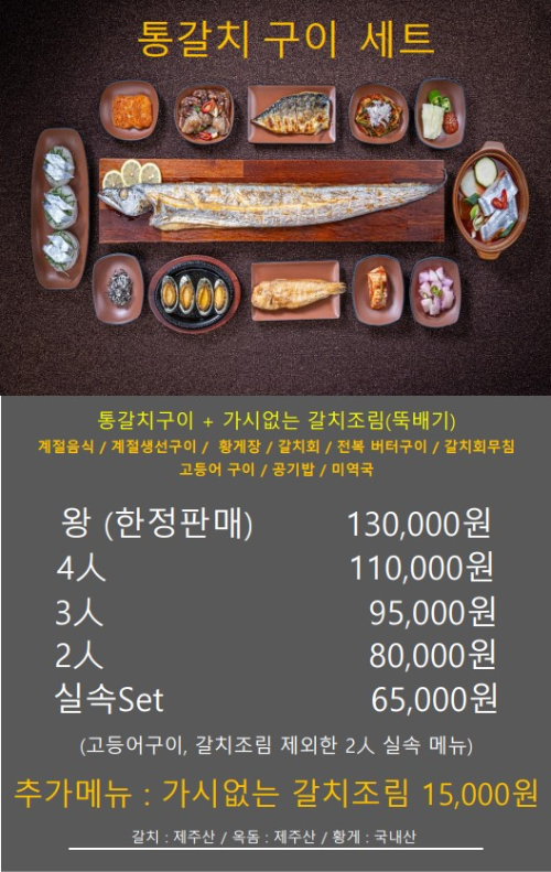 메뉴는 아래 그림 참고(출처 : 갈치왕 중문점)