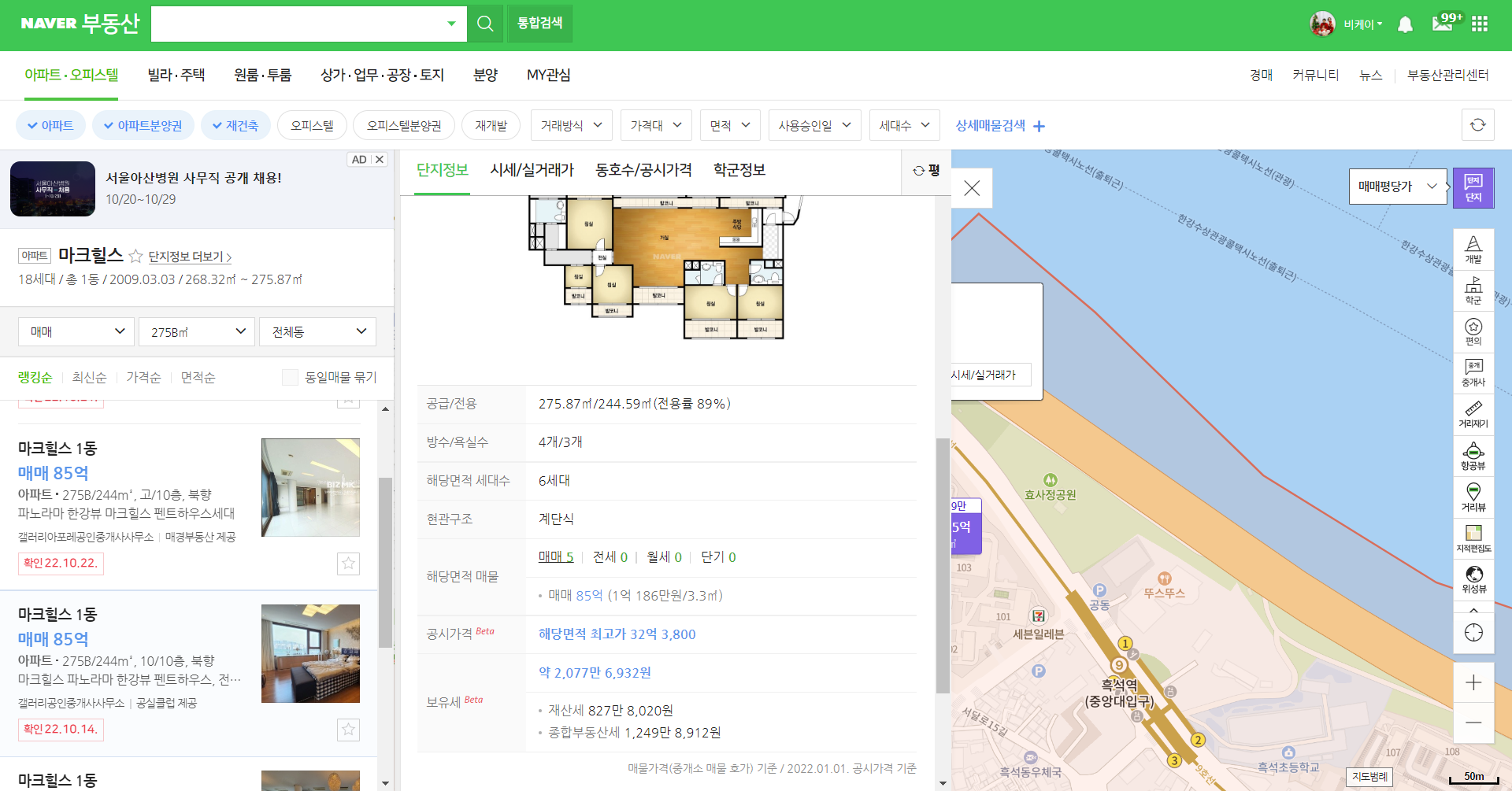 그 아파트 이름은 흑석동 마크힐스로 한강이 바로 보이는 곳으로 이곳 근처를 지나면서 누구나 볼 수 있는 고급빌라입니다. 총 18세대로 구성되어 있고, 공시지가만 32억원에 현재 매물로 나온 가격이 82억원입니다. 월드클래스는 신혼집도 남 다르네요. 엄청나게 많은 관심을 받고 사는 공인들에게는 개인 사생활을 보장받을 수 있다면 이 정도 가격은 아깝지 않을 거란 생각도 듭니다.