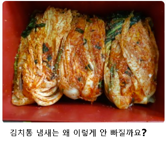 이제 곧 김장철입니다. 김장을 준비하기 전에 먼저 해야 하는 작업 중 하나가 김장통 준비하는 것일 겁니다. 요즘에는 김치냉장고는 한국 가정에서는 필수품이고, 그래서 대부분의 가정에서 플라스틱 김치통을 가지고 있습니다. 그런데 김치를 오랫동안 보관하다보면 자연스럽게 플라스틱 김치통에 냄새가 뿌리깊이 베기 마련입니다.