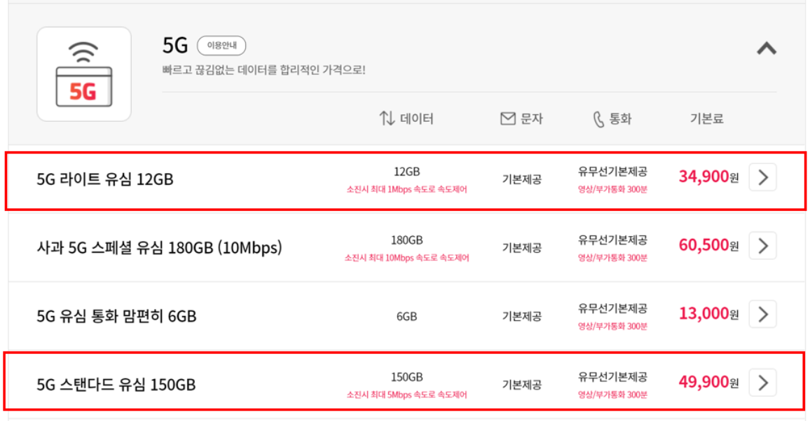 3. 5G 요금제 _ LG U+ 알뜰폰